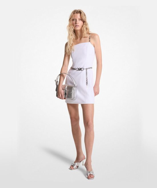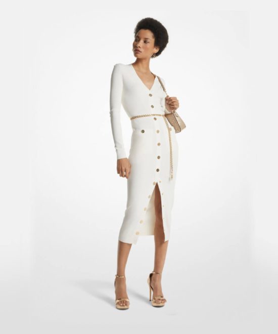 The wedding festivities begin with a casual gathering — the dress code is: “chic, comfortable, & fun” — and this dress-over-pants combo absolutely fits the bill.